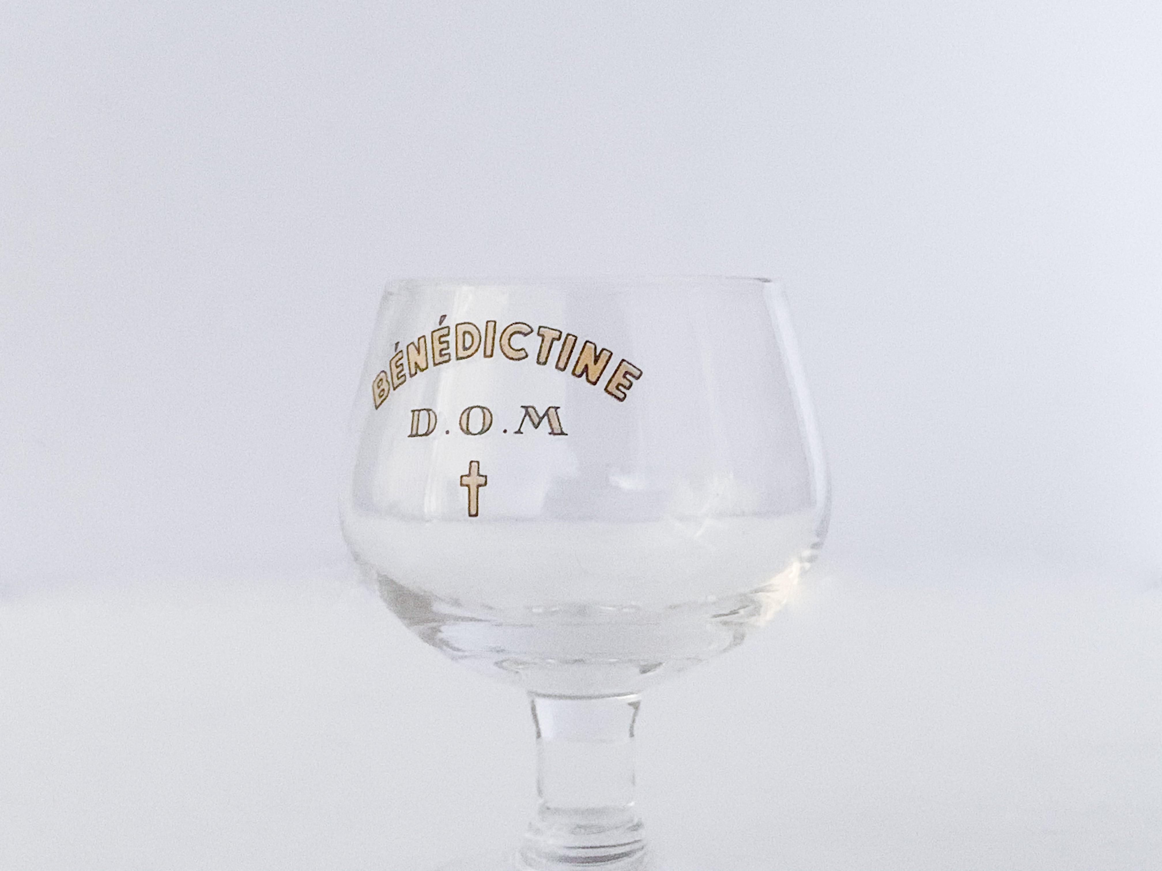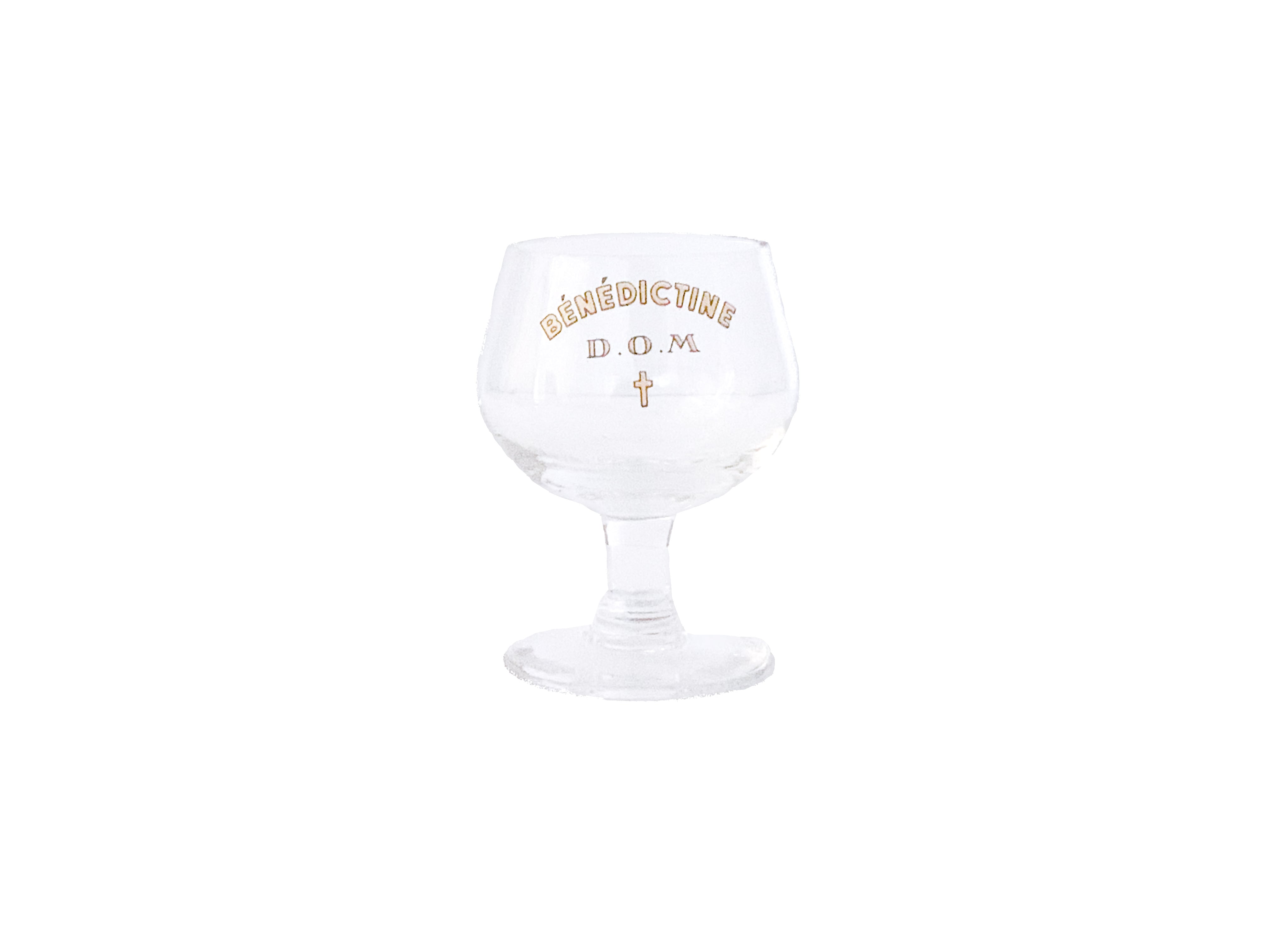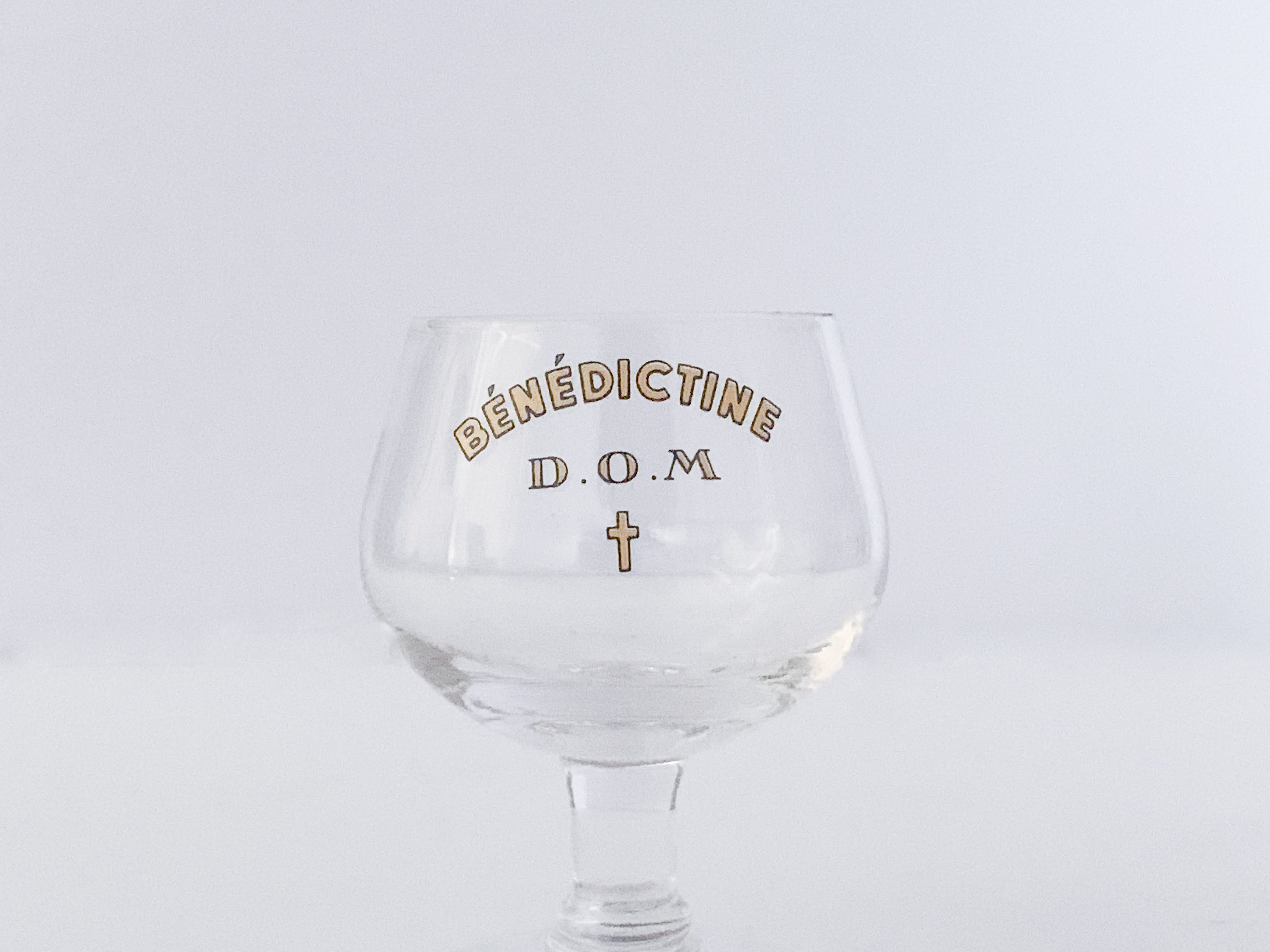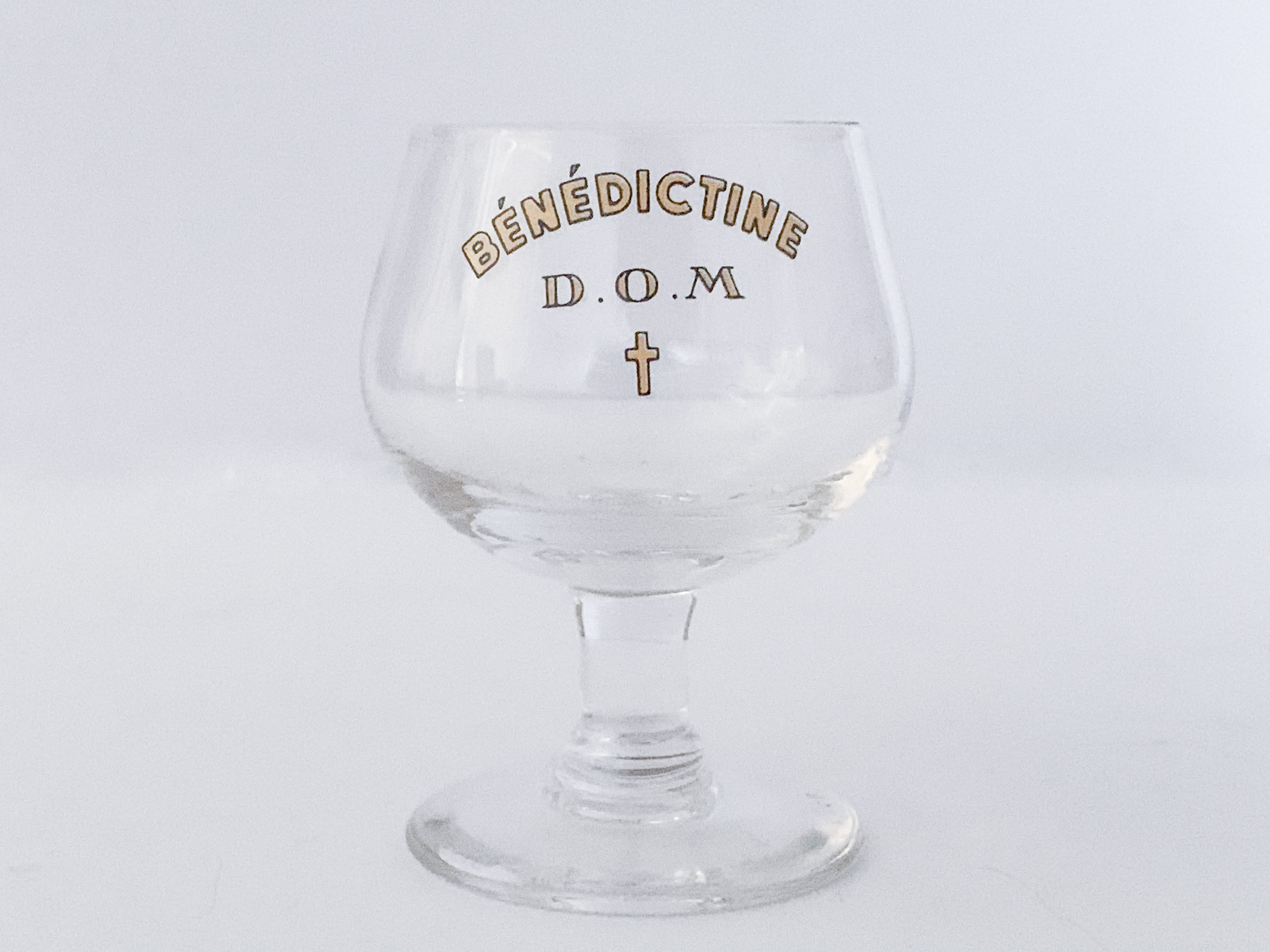 とても小さなミニグラス。丸っこいフォルム、小さなクロス、バランスの良い文字。全てが完璧です。