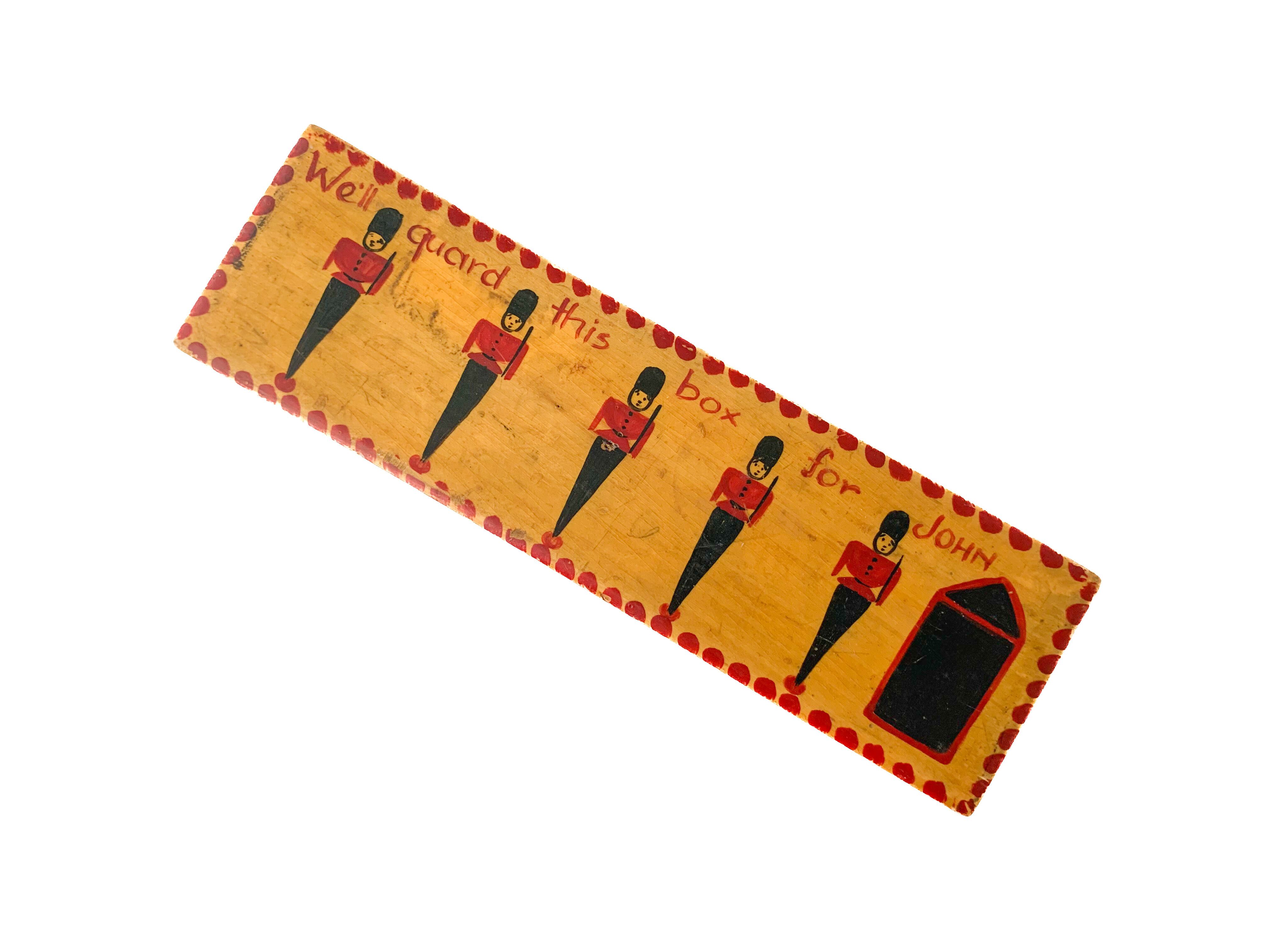 手描き感の溢れる木製ペンケース。中に色鉛筆と可愛い落書きも。真ん中に仕切りがあるので、実際にペンケースとしても使いやすいと思います。