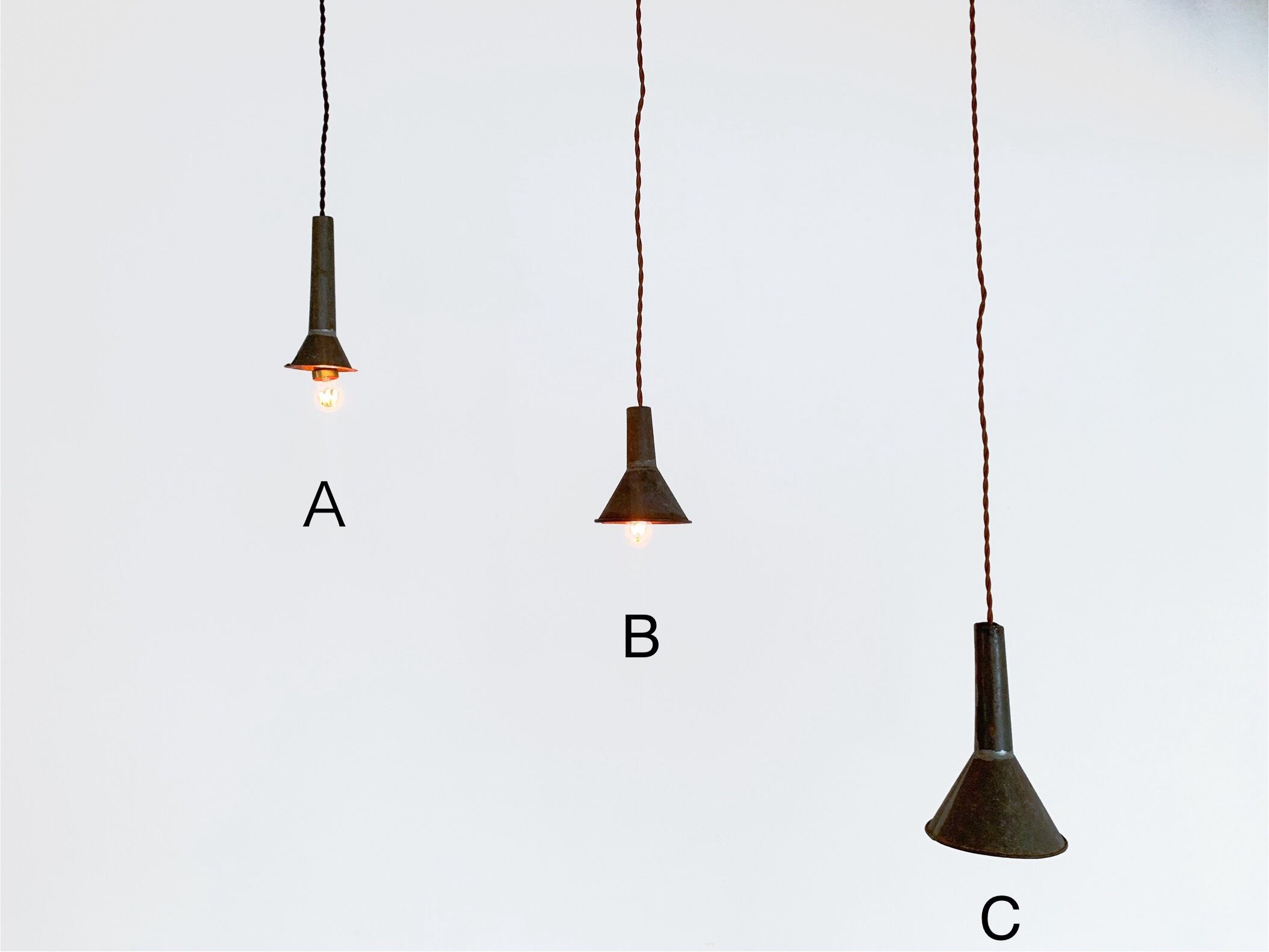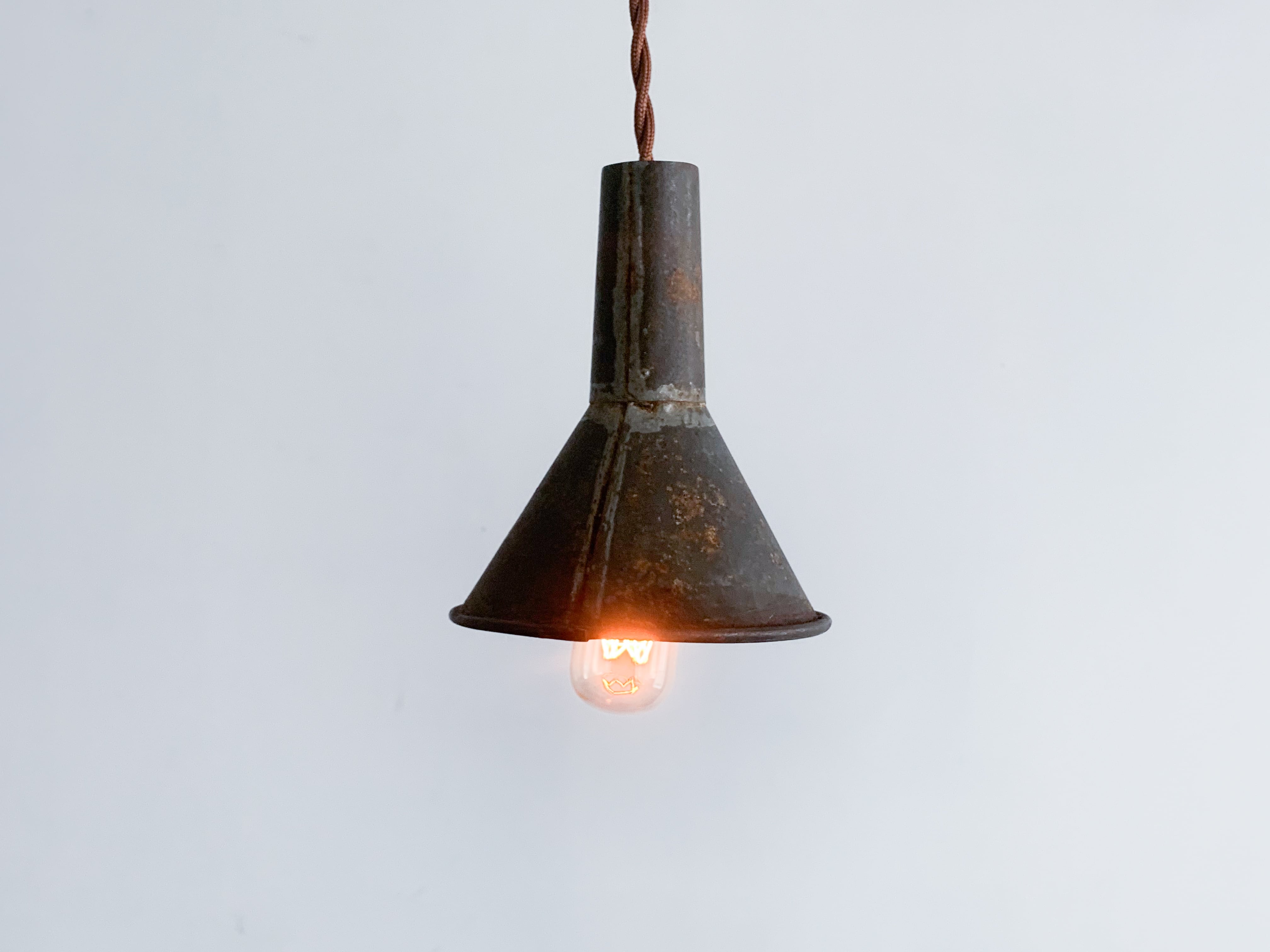 ブリキの漏斗ライトになります。変わった形の物もあります。アンティークにしか出せない色味と風合いです。