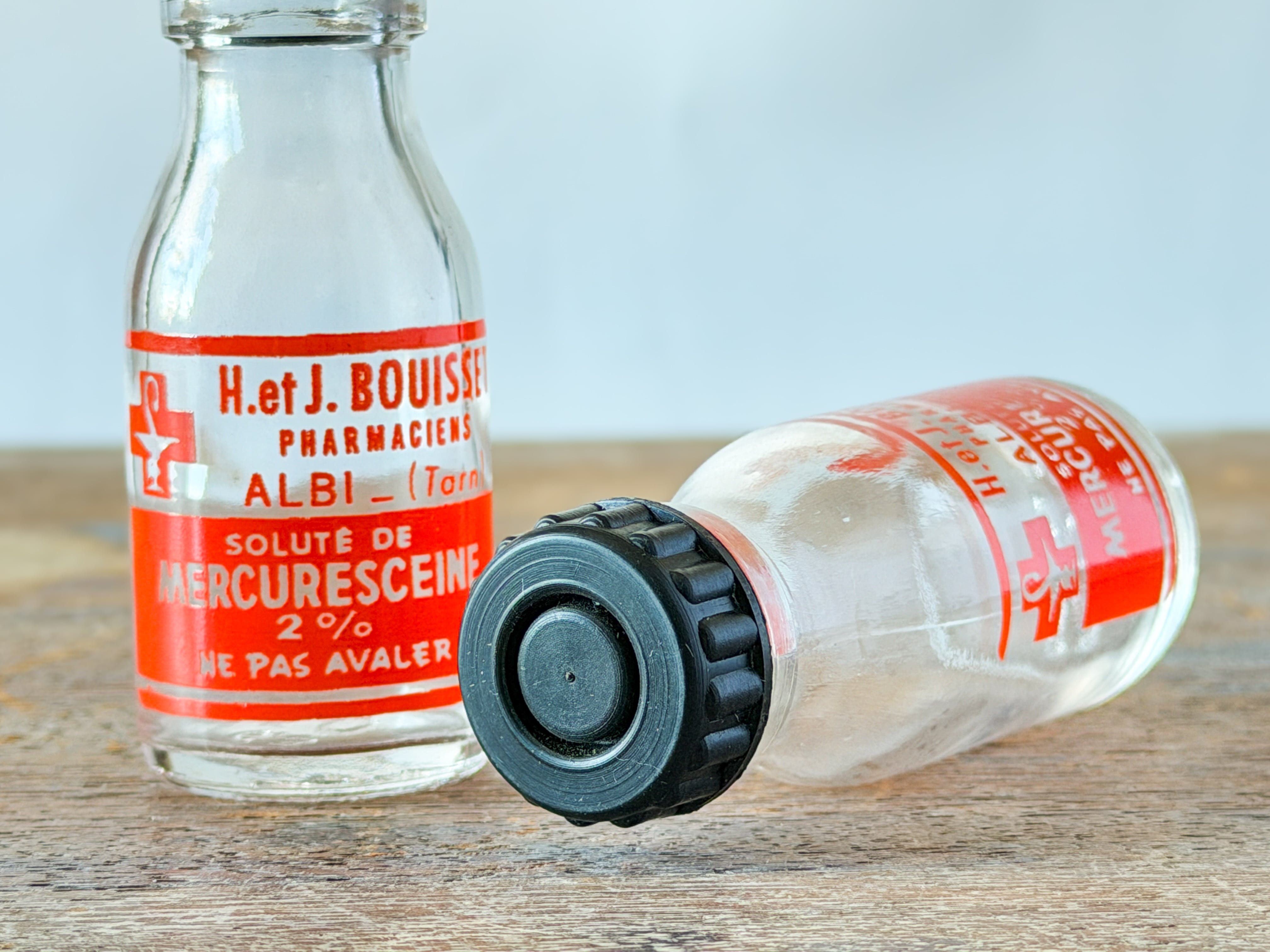 フランスで見つけた、蓋付きの小さな薬瓶です。クロスや文字のバランス、色も良いです。置いてあるだけで十分なのですが、小花を一輪飾っても素敵です。