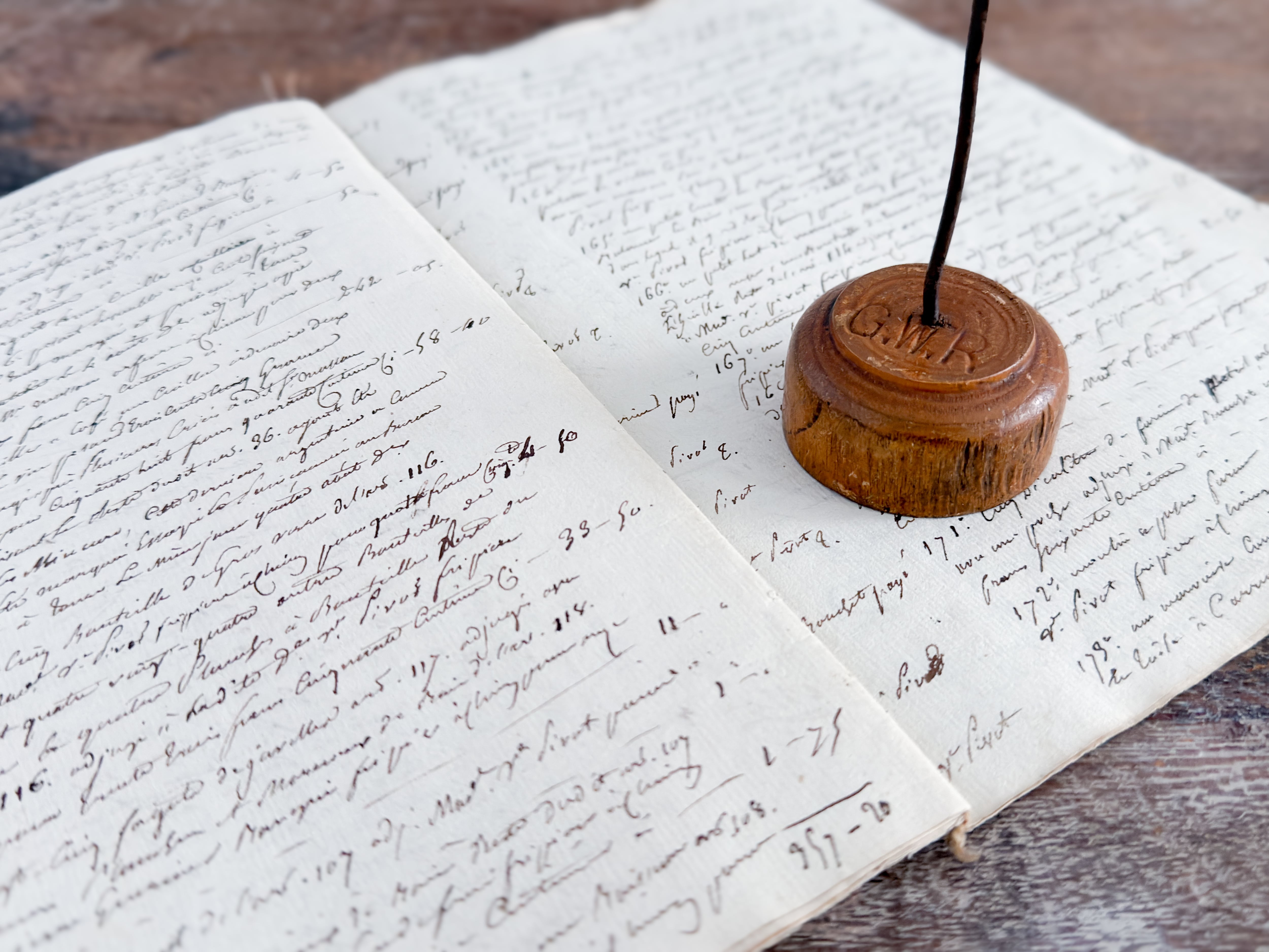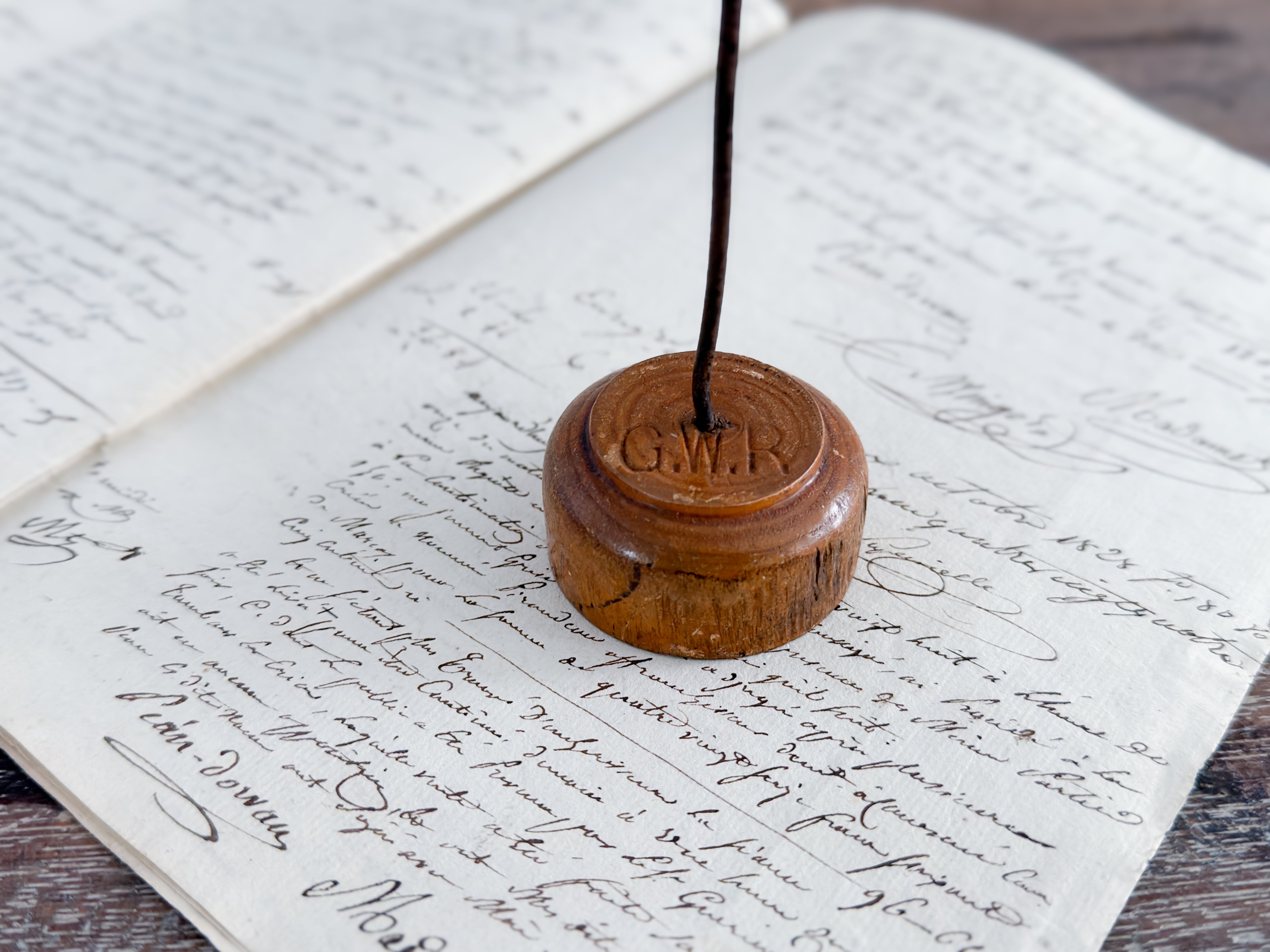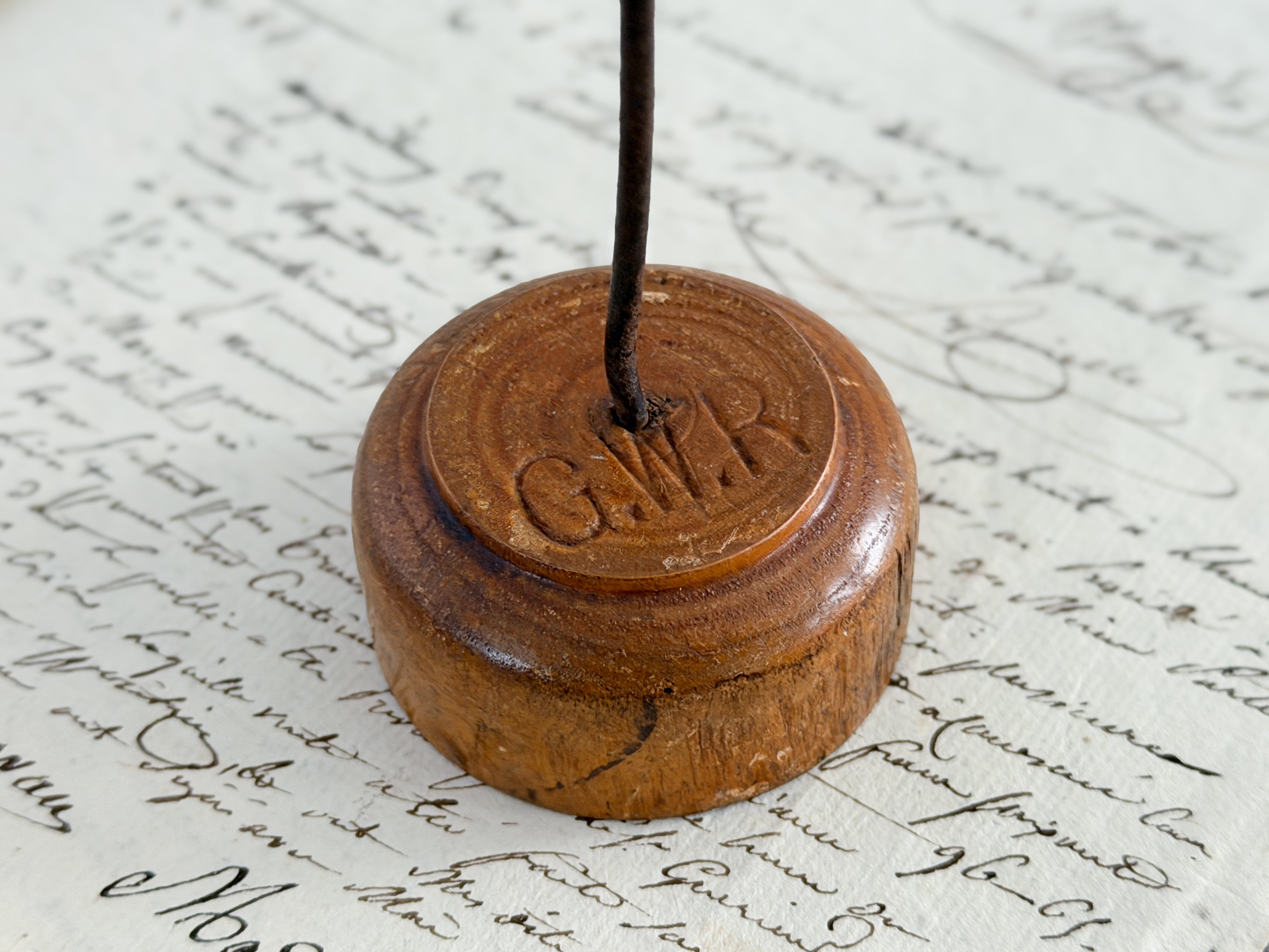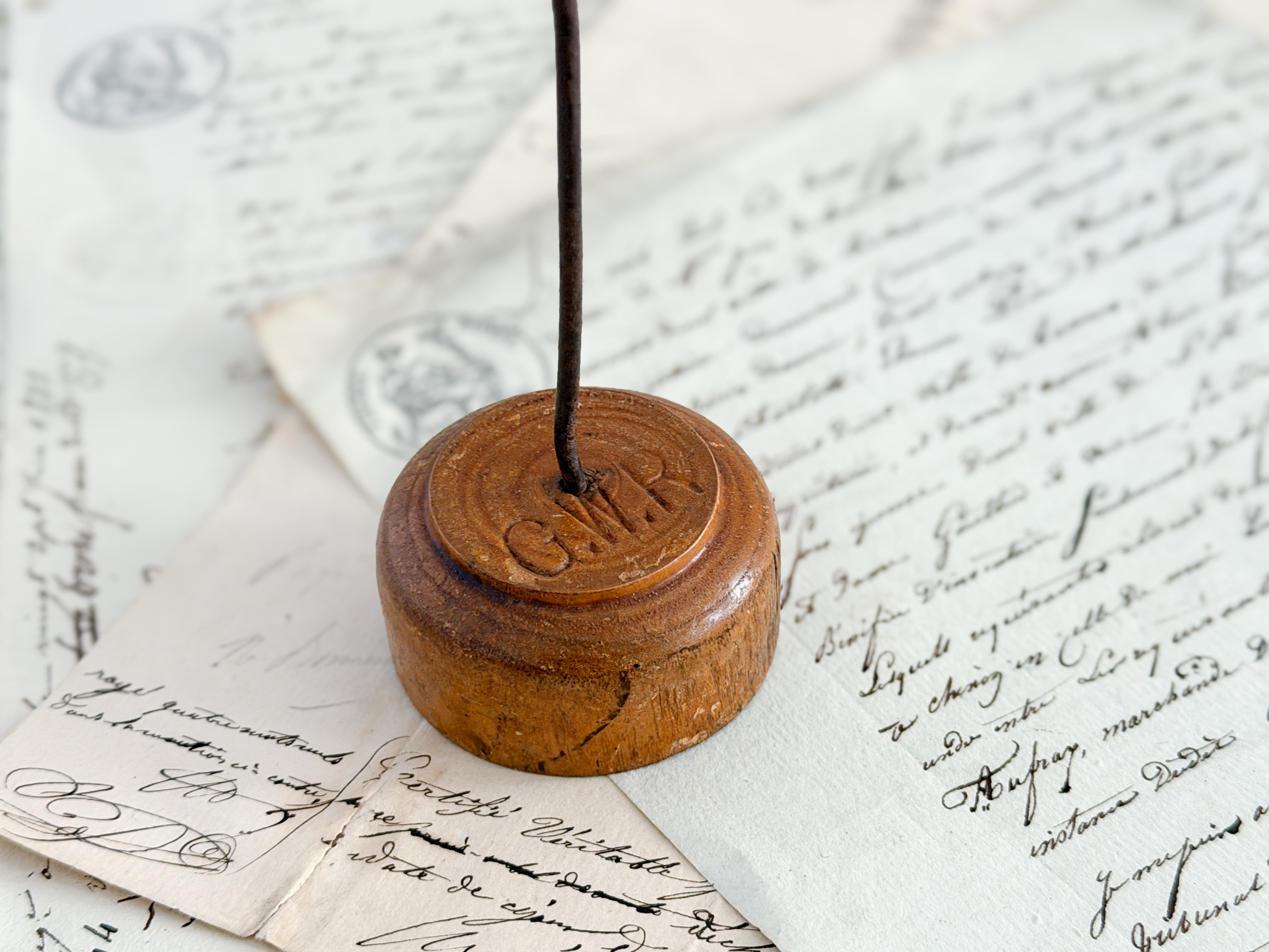 なかなか良いレシートホルダーは意外と少ないですが、こちらは素材感と経年の表情がとても魅力的なお品です。木の色味や枯れ具合、鉄部分の歪みなど、どの要素も雰囲気があり、全体としてバランスの取れた佇まい。