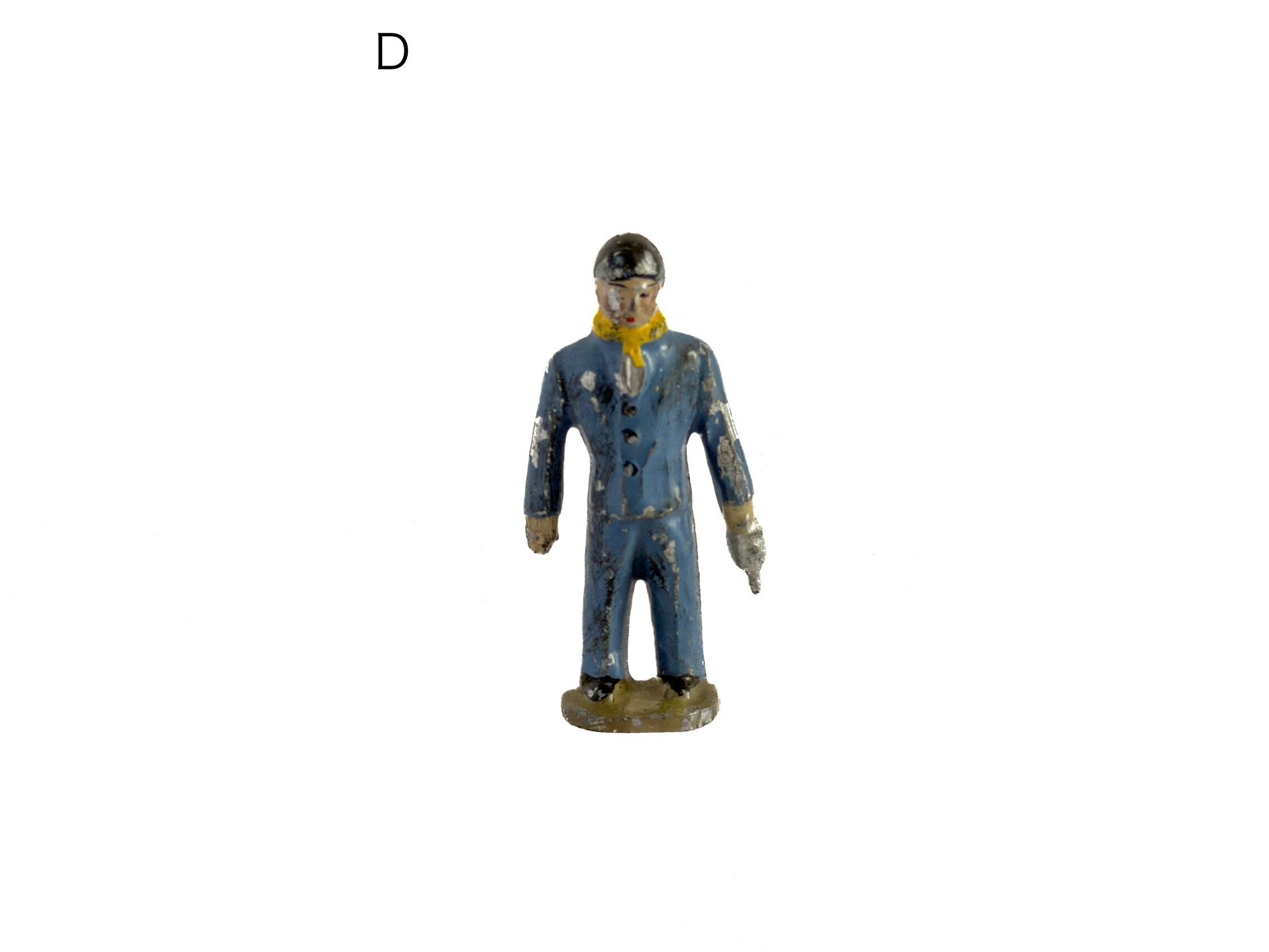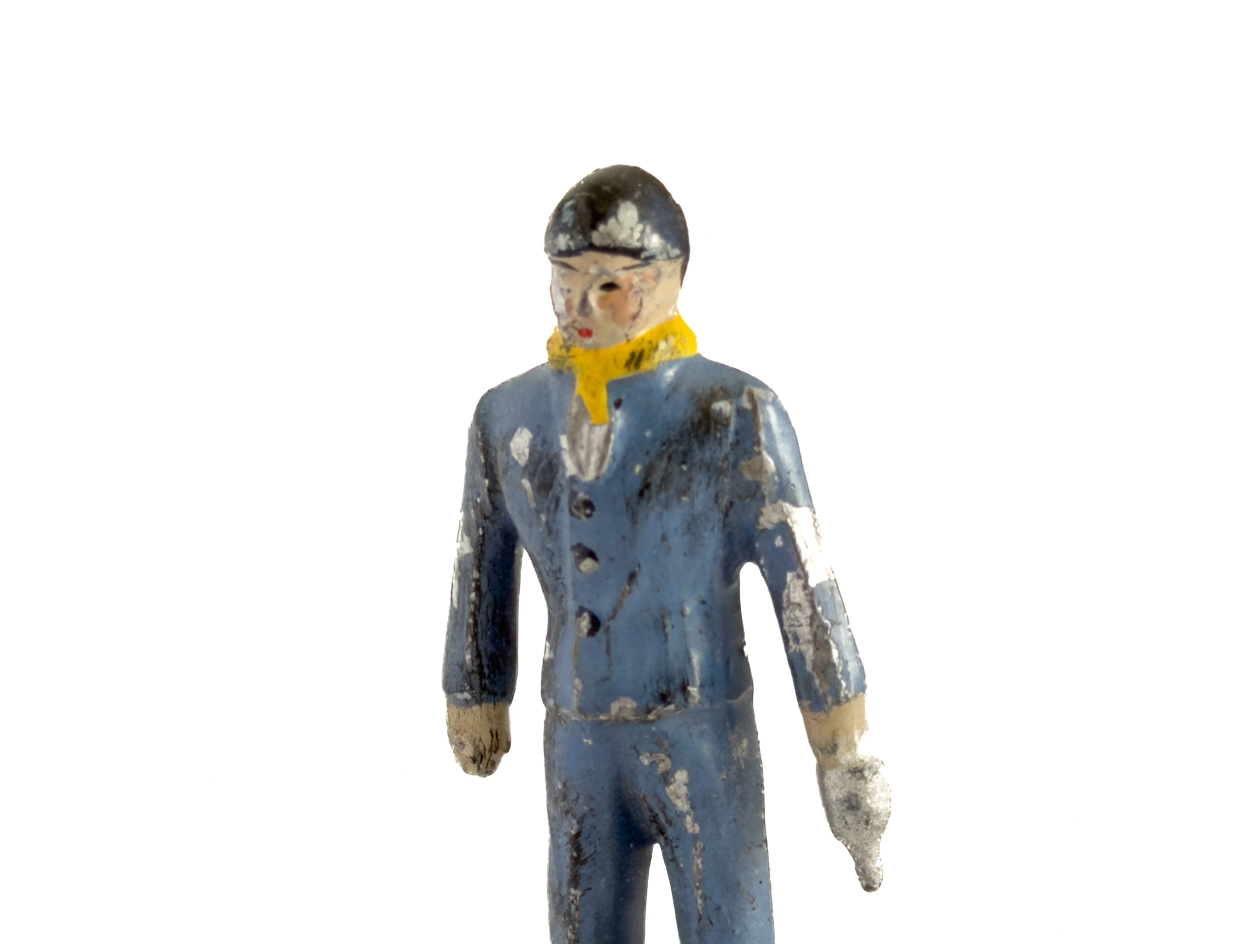 1950年代前半の鉛のフィギュア。素朴で少しとぼけた表情、ラフな色付け、剥がれたペイント。見ていると愛着が湧いてきます。ふと目に入った時に、少し気持ちが緩むような存在です。空間に小さな物語が生まれますね。