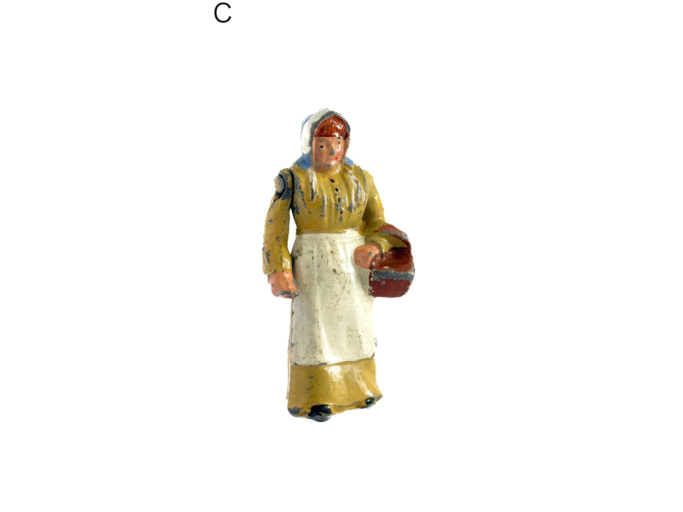 Cは、籠を持った女性です。餌をやっているのかな?片腕を動かす事ができます(片腕が外れやすいですが、外れた場合は簡単につけられます)。裏に刻印があります