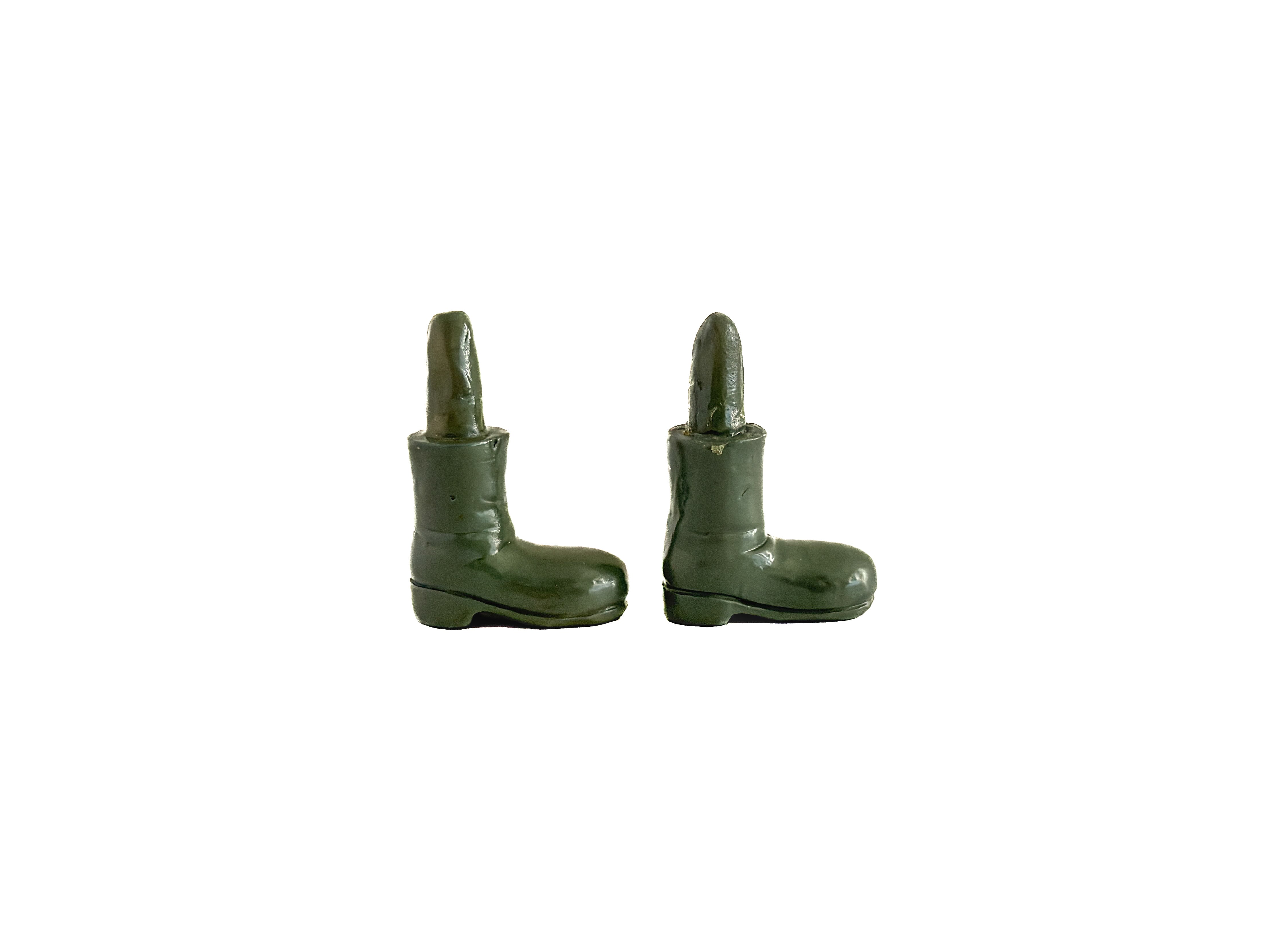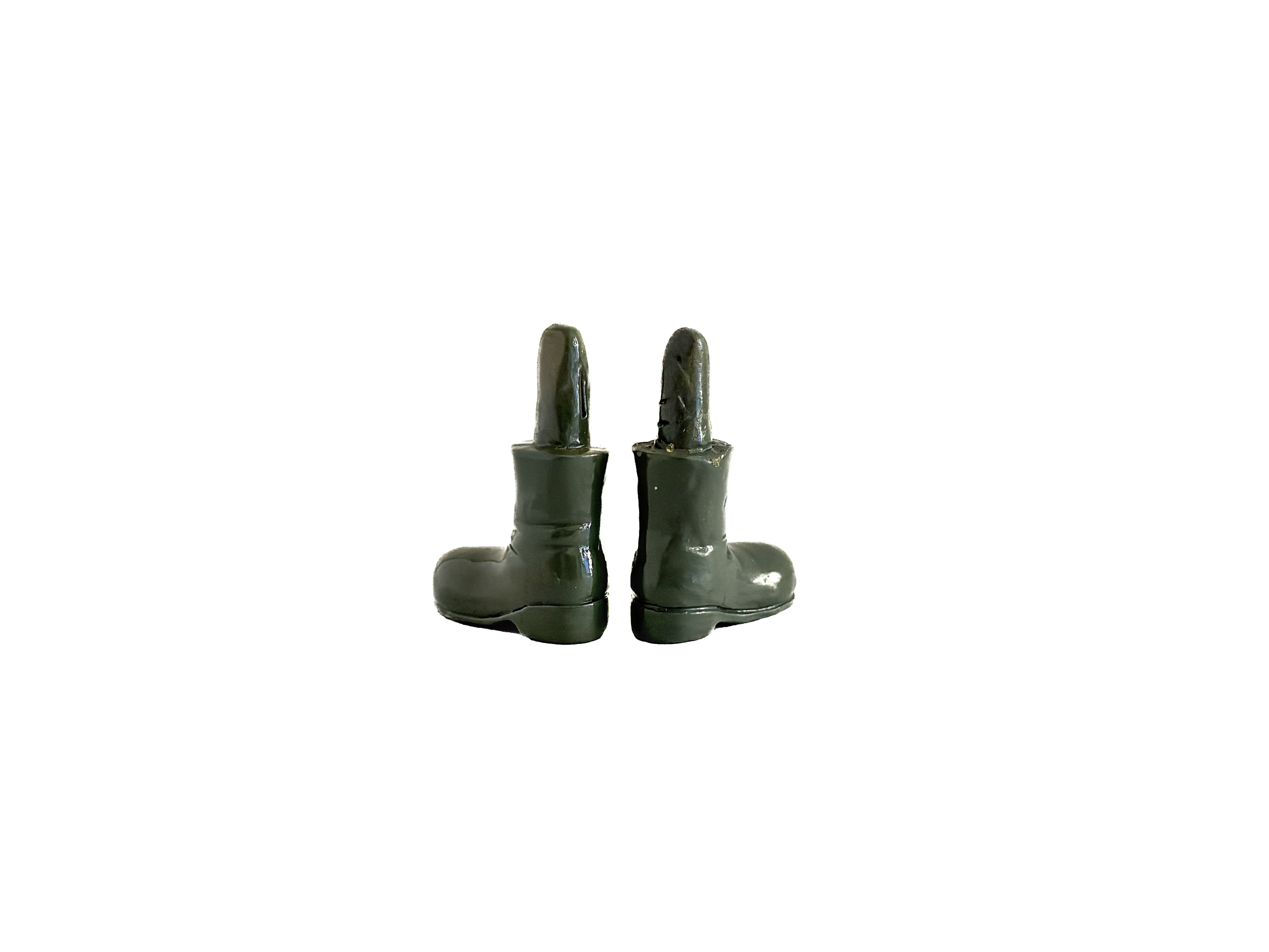 小さな小さなミニチュアのブーツ。フランスの物になります。ころん、と丸いつま先に、少しぽってりとしたフォルム、思わずきゅんとしてしまいます。落ち着いたオリーブグリーンの色味もとても可愛くて、甘くなりすぎないのが良いです。よく見ると、履き古した様な皺もちゃんとあります。両足をきちんと揃えて並んでいる姿は、誰かが脱いでそっと置いていったみたいで、物語を想像してしまいます。小さな世界を愛する方へ、とっておきの一足です。