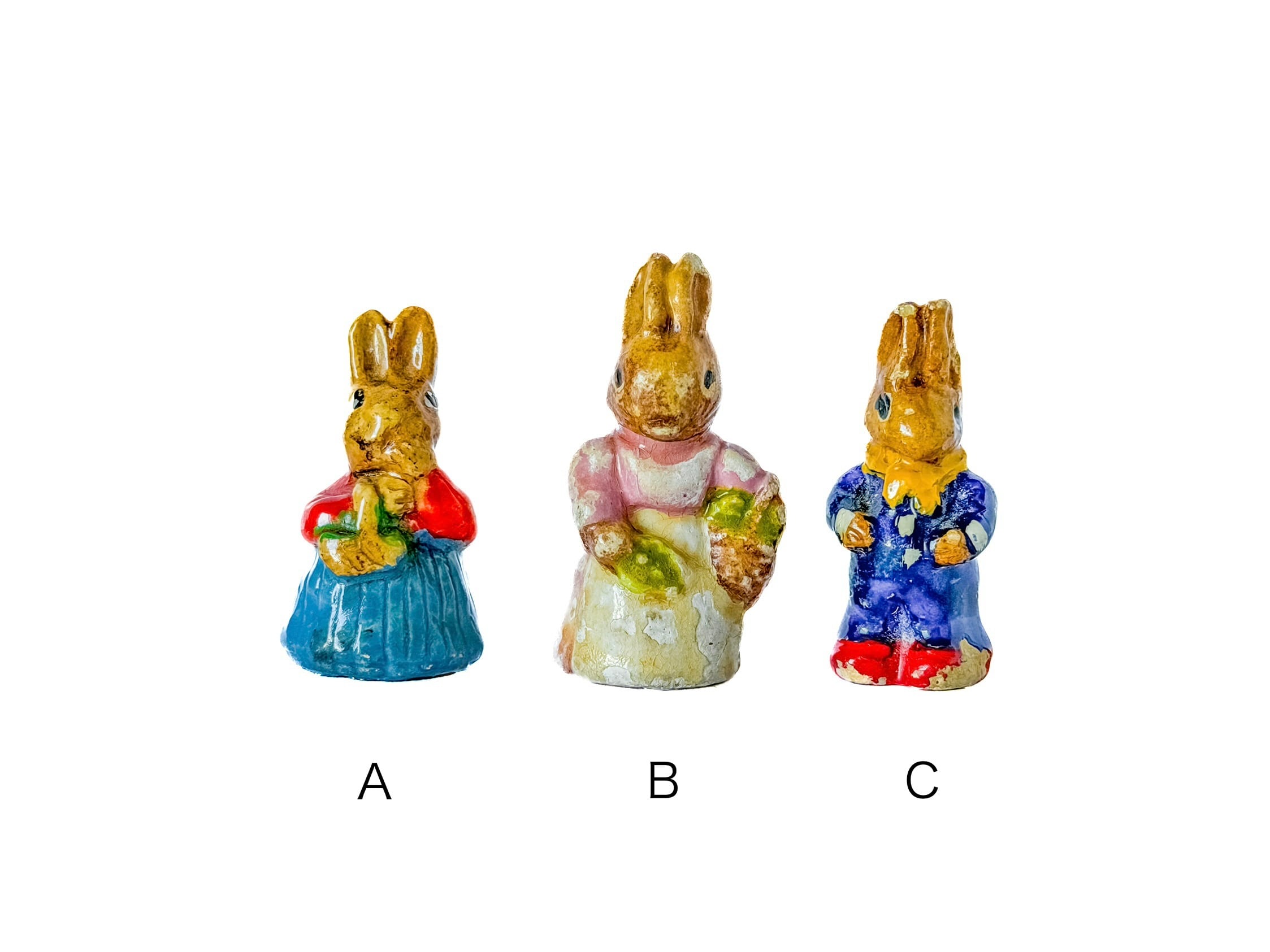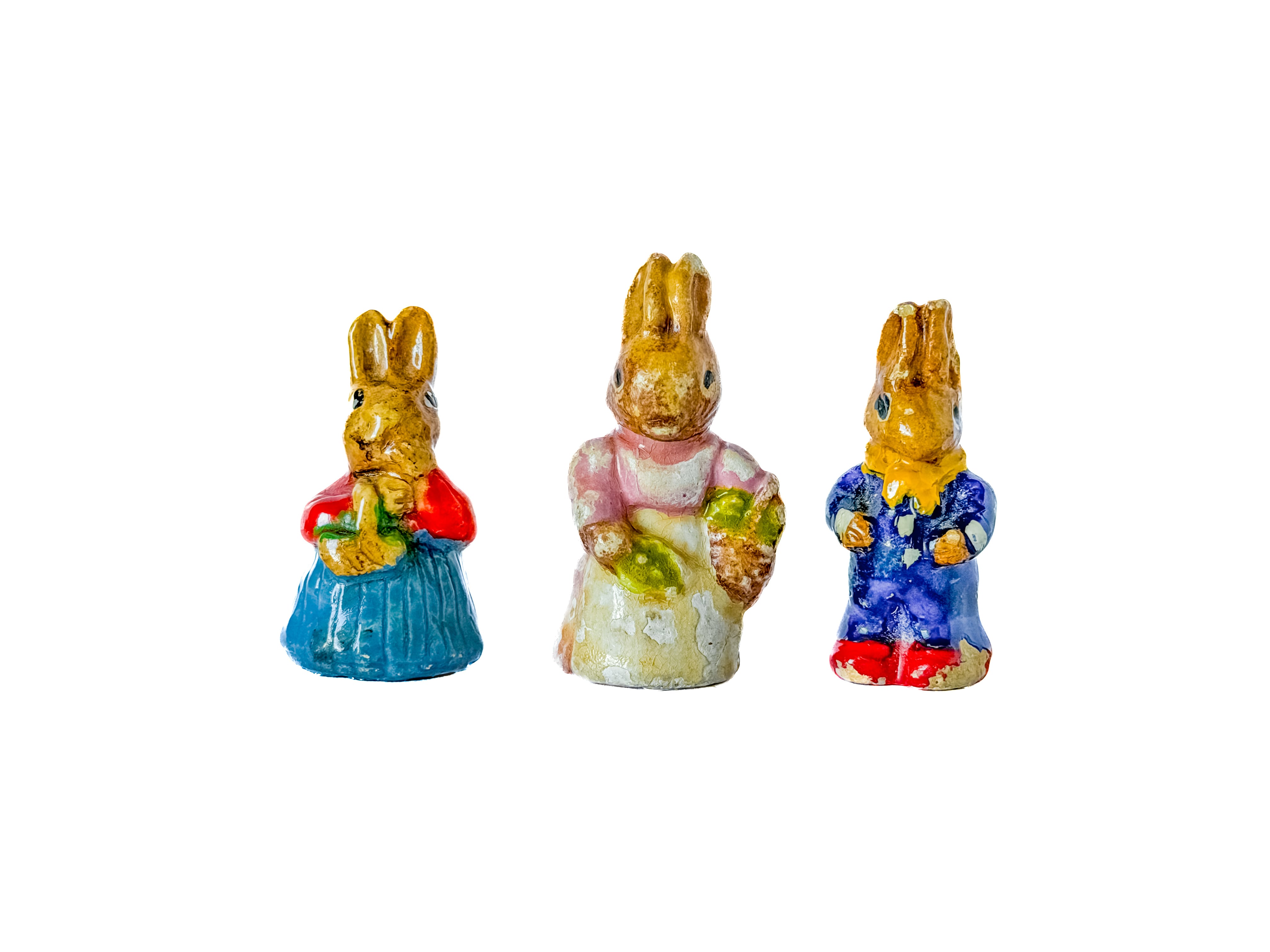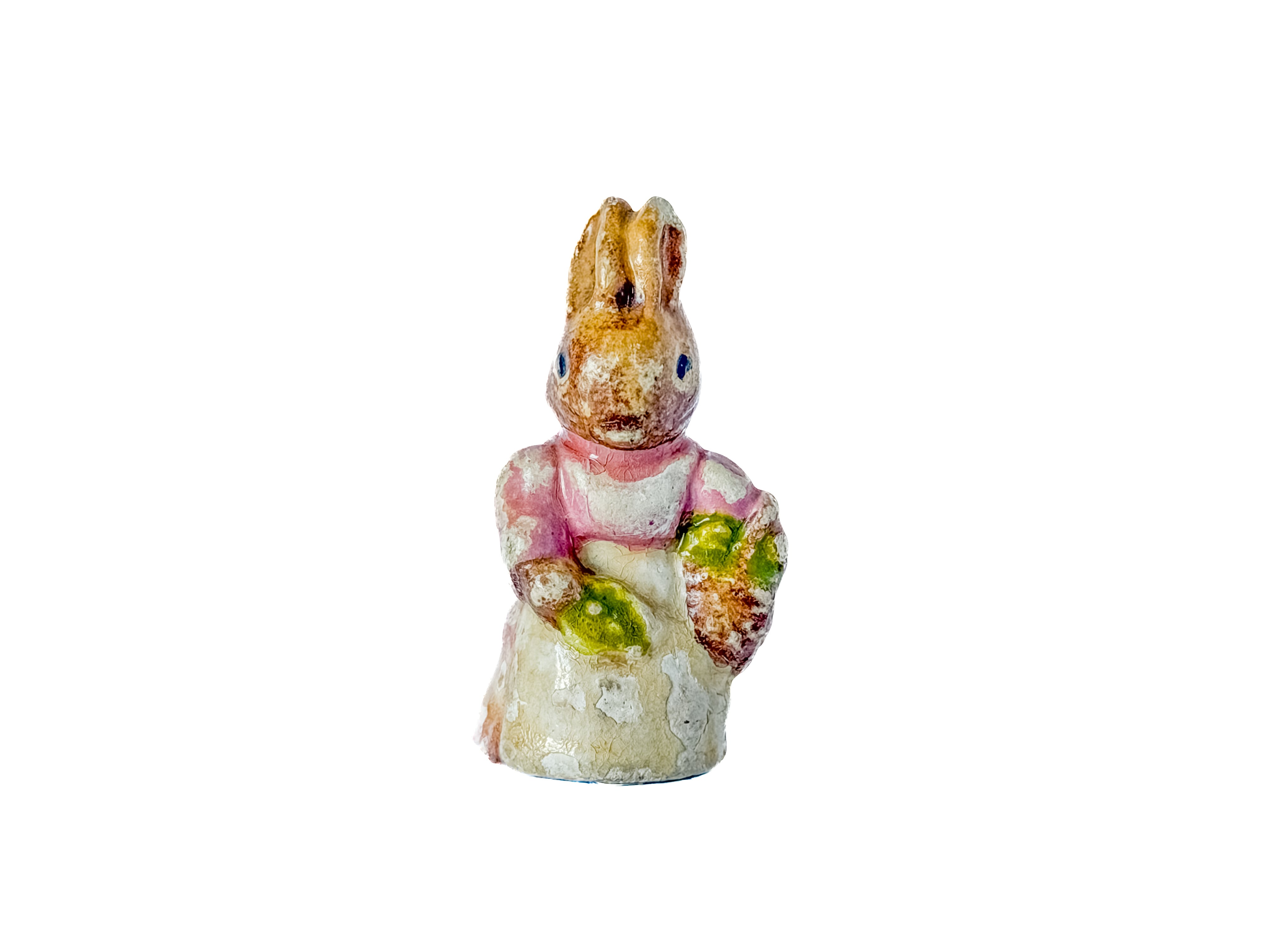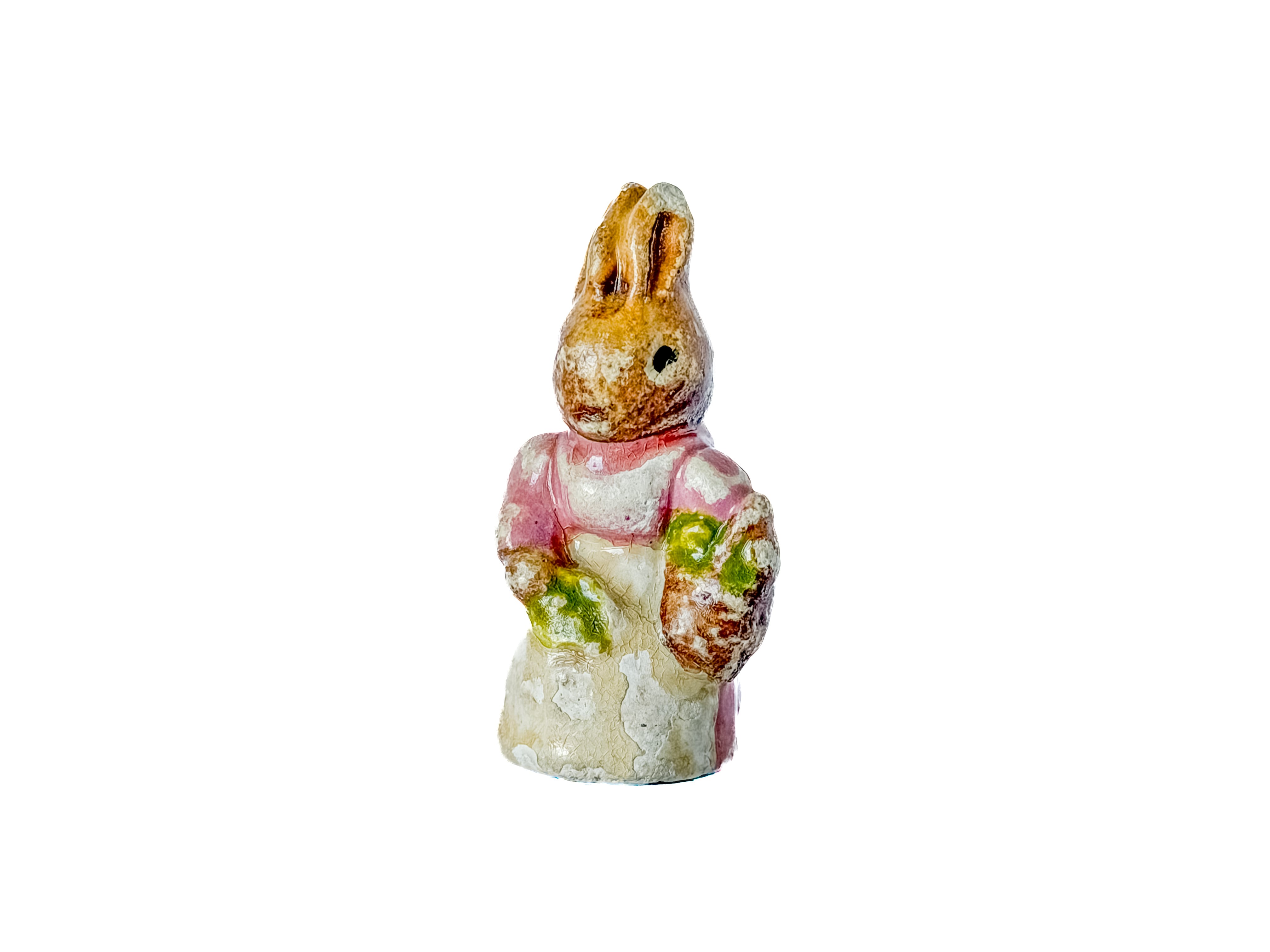 イギリスで見つけた、磁器の小さなうさぎたち。ピーターラビットでしょうか?まるで絵本の1ページから、そっと抜け出してきたようです。収穫の帰り道でしょうか。籠いっぱいに野菜が入っています。小さな物語が生まれるお品です。どの子をお迎えしますか?