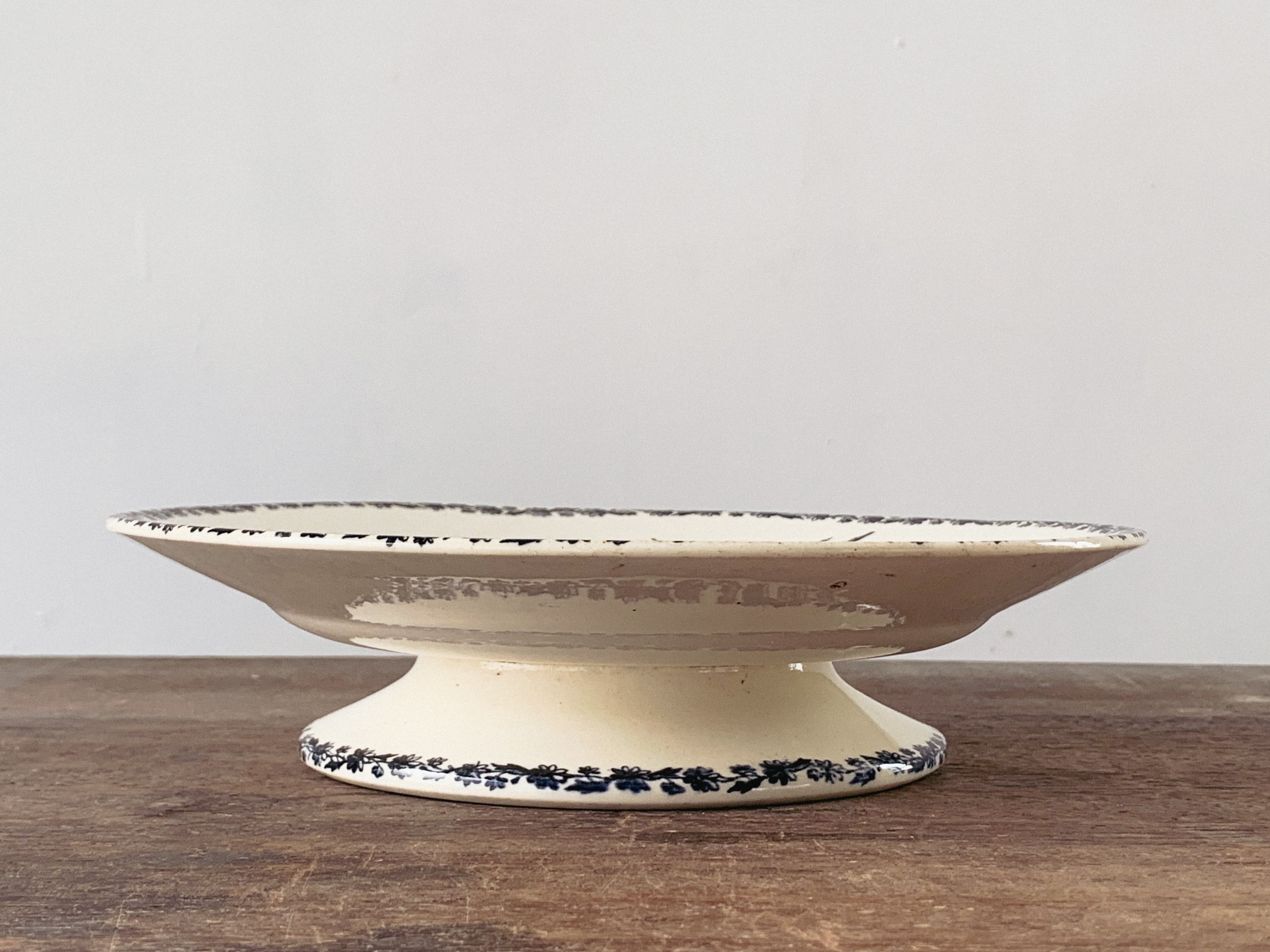 HB&Cie(Hyppolyte-Boulengen&Cie)の可愛らしいコンポティエ。HB&Cieは1804年にパリ近郊ショワジー・ル・ロア(Choisy le roi)で創業した窯元です。やわらかなクリーム色に、草花と一羽のツバメが軽やかに描かれています。縁や高台に施された繊細な装飾も美しいです。高さのあるコンポティエは、フルーツや焼き菓子をのせると雰囲気がぐっと整います。もちろん何も乗せずに飾るだけでも十分に美しいです。